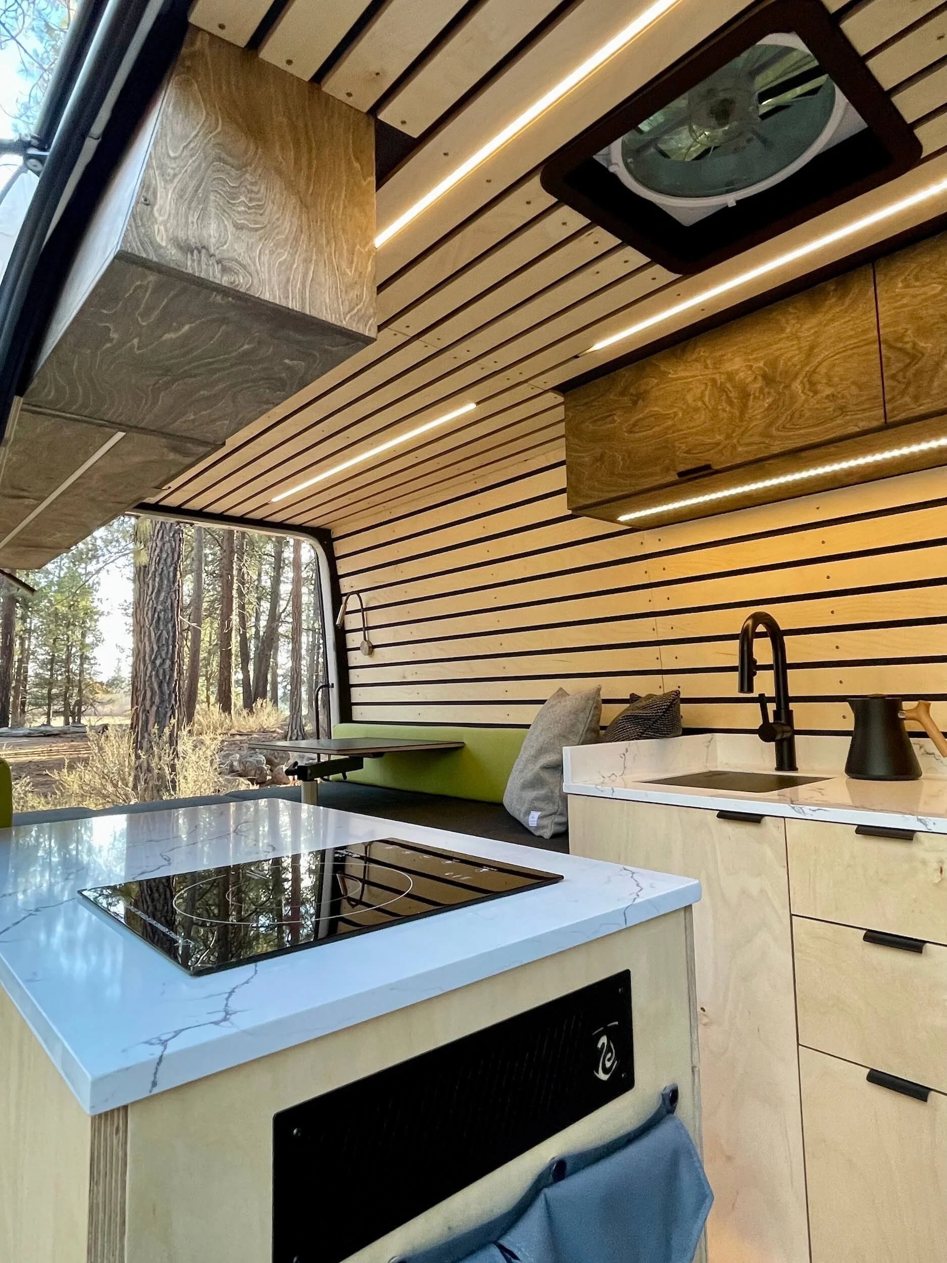 Beginning with our initial meeting through your build process, we’ll design the most efficient and functional floorplan to maximize space and comforts in your van. From sleeping quarters to workspaces, to kitchen design and layout, having a dialed multi-functional space is critical to enjoying time in and out of your adventure vehicle. Equally important as layout is material selection. Durability, functionality, and industry leading finishes are delivered via a bespoke process for each build.