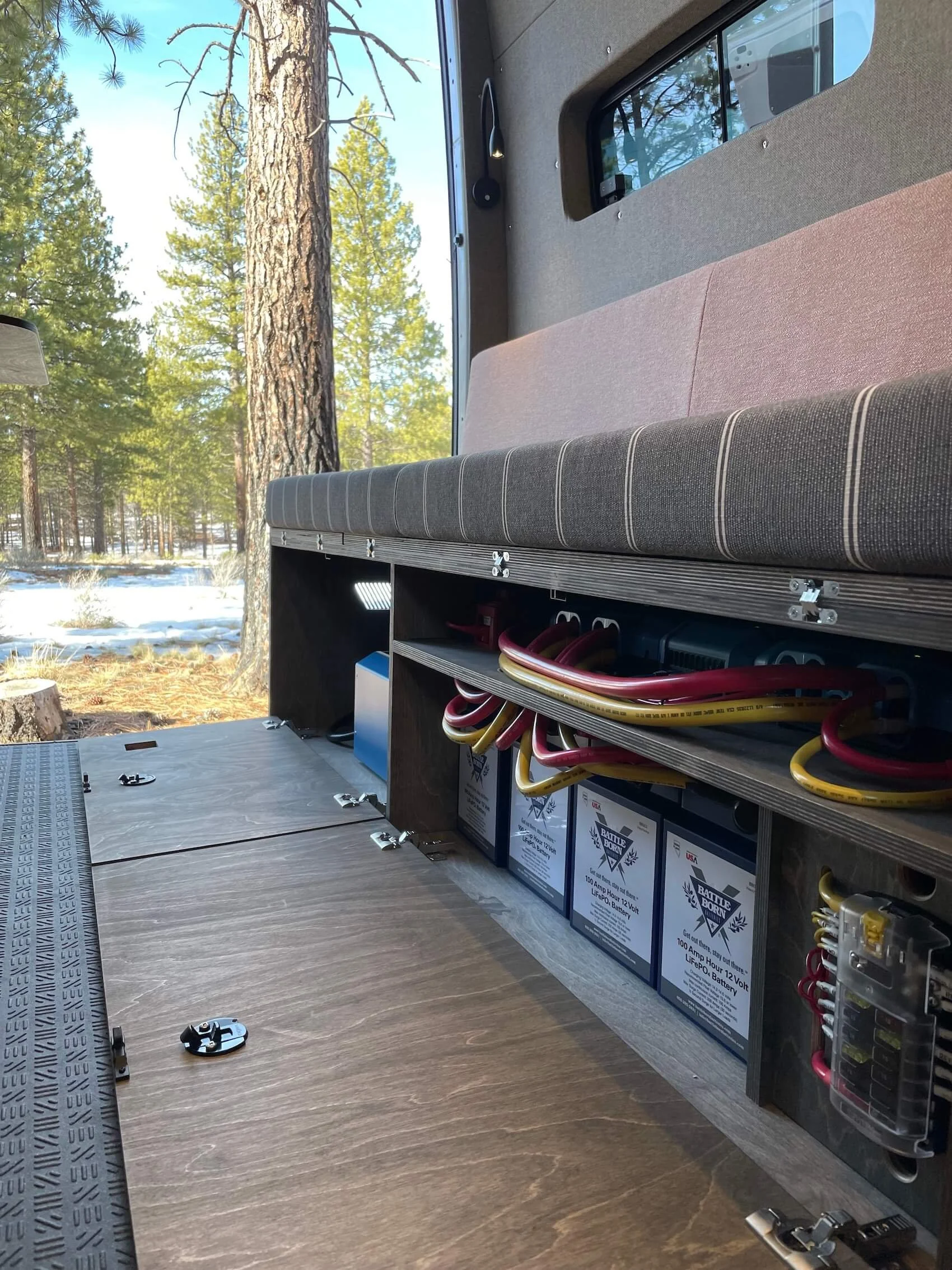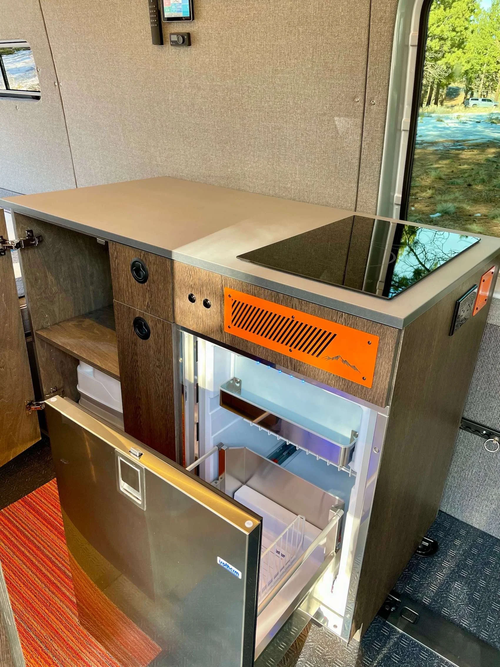 Mrazek was designed with long-haul adventures in mind. Our marine certified electrical system contains a 400Ah Lithium-Ion battery bank, 300 Watts of solar and a 3000W inverter all controlled by Victron and their industry leading management system, to enable days (or weeks) of adventure. We crafted this latest van with only premium materials and cabin comforts. 3M insulation, dual Maxxair fans, Lonseal flooring, Sunbrella upholstery fabrics, 4” memory foam mattress and paperstone countertops along with custom storage bags from our friends at Roam and Shelter.